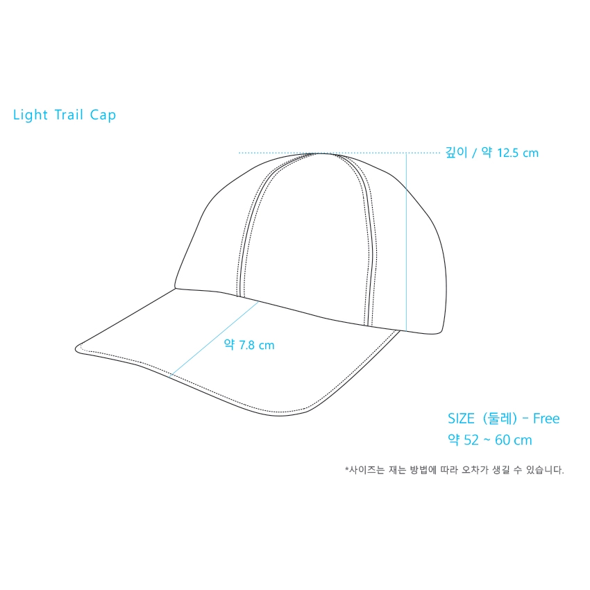경량의 원단 (Nylon 15D) 과 내부 메쉬라이닝으로 쾌적한 착용감을 주는 모자 입니다.