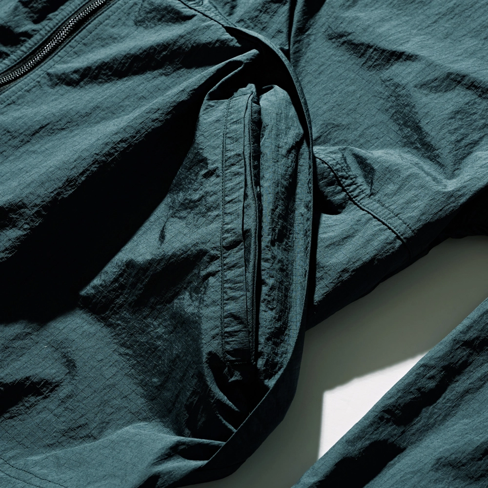 기존 빈티지 제품에는 없었던 후드의 추가 및 각 부분별 디테일을 현대적으로 발전시켜 활동성과 경량화에 가장 큰 목적을 두고 완성되었으며 특히 패킹이 가능하도록 듀테로 립 스탑 아미 팬츠의 듀테로 제직 나일론 소재를 사용해 별도의 패킹 백 역시 제작되었습니다.