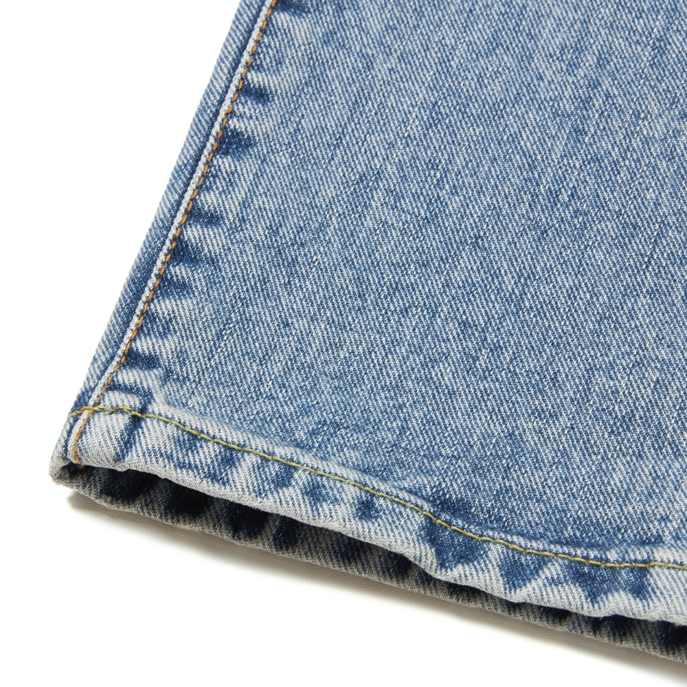 특히 스토어계 데님의 모습을 재현하기 위해 좌능으로 만들어진 원단은 부드러운 터치감과 드레이프감을 지녔습니다.