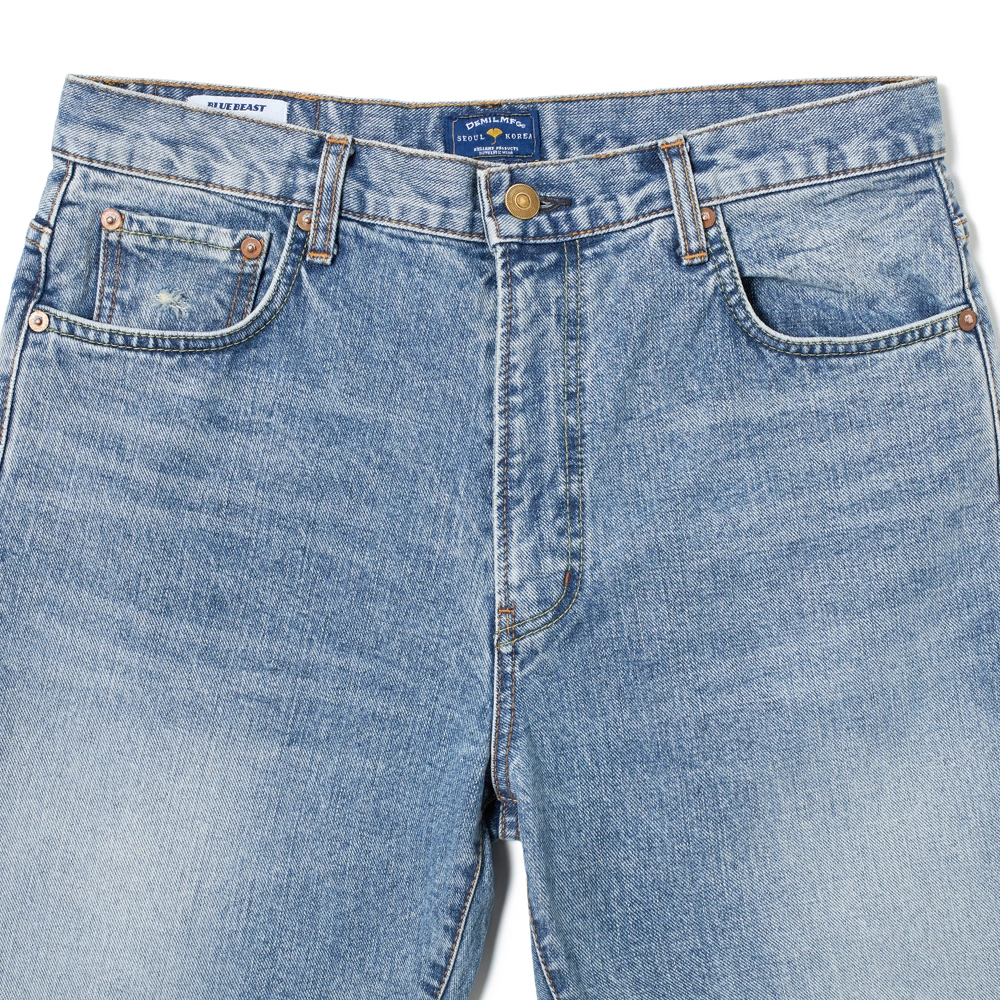 DML 원단은 데밀이 전남방직 블루비스트와 협업하여 실의 짜임부터 원단의 밀도, 염색의 정도까지 모두 처음부터 기획한 빈티지 느낌의 데님입니다.
