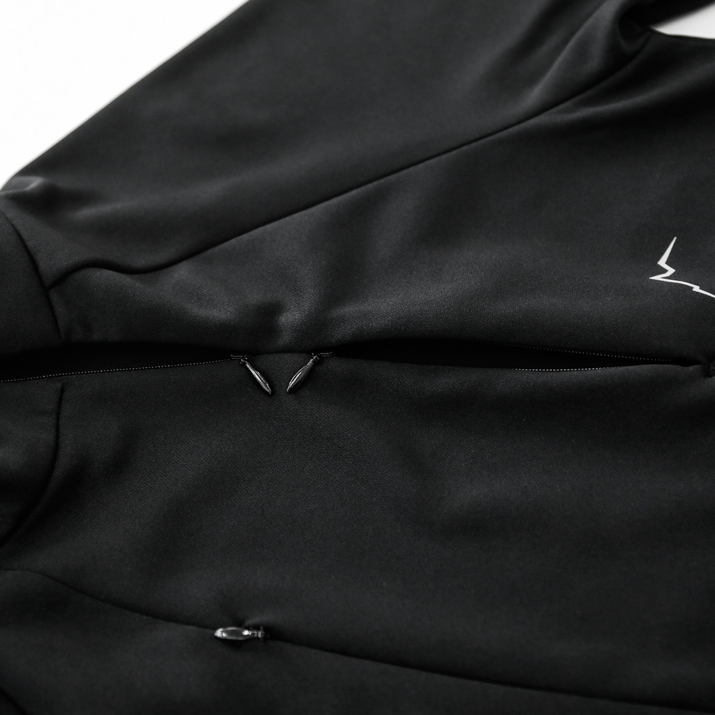 가슴포켓 1개와 메인지퍼를 이용한 벤틸레이션이 가능한 제품이며, 허리는 조임스트링이 적용되어 있습니다. 소매 부분이 타이트한 형태의 제품입니다. 엄지손가락을 끼울 수 있는 썸홀이 적용되어 있습니다. 지퍼동작시에는 곡선을 최대한 펴서 작동하시면 편하게 사용이 가능합니다.