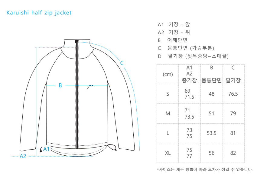 Toray 사의 경량의 보온소재 원단인 Karuishi 를 사용한 제품입니다.Karuishi 원단은 일반적인 플리스와는 다르게 2레이어 구조에 기모처리를 한 원단으로 겉면은 매끄러운편이며 내부는 기모처리가 되어 있습니다.