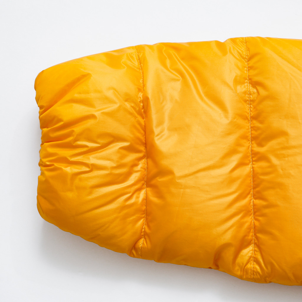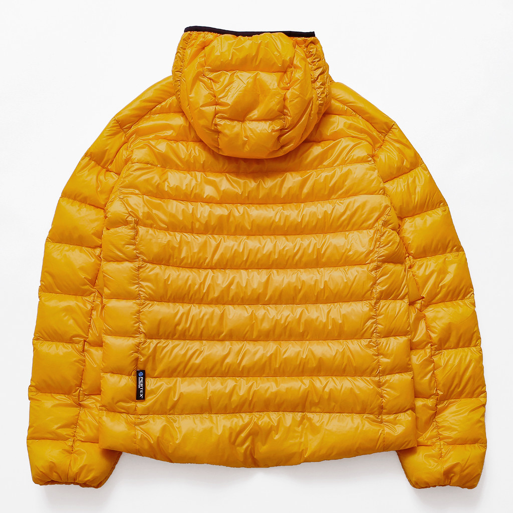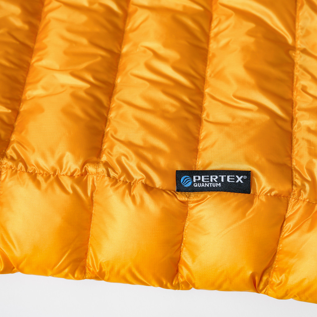 Pertex사의 원단과 European Goose Down 을 적용하였습니다. 다운 푸르프 코팅되어 있고, 표면은 발수 코팅(DWR)이 적용되어 일정 기간동안 물을 튕겨낼 수 있습니다.