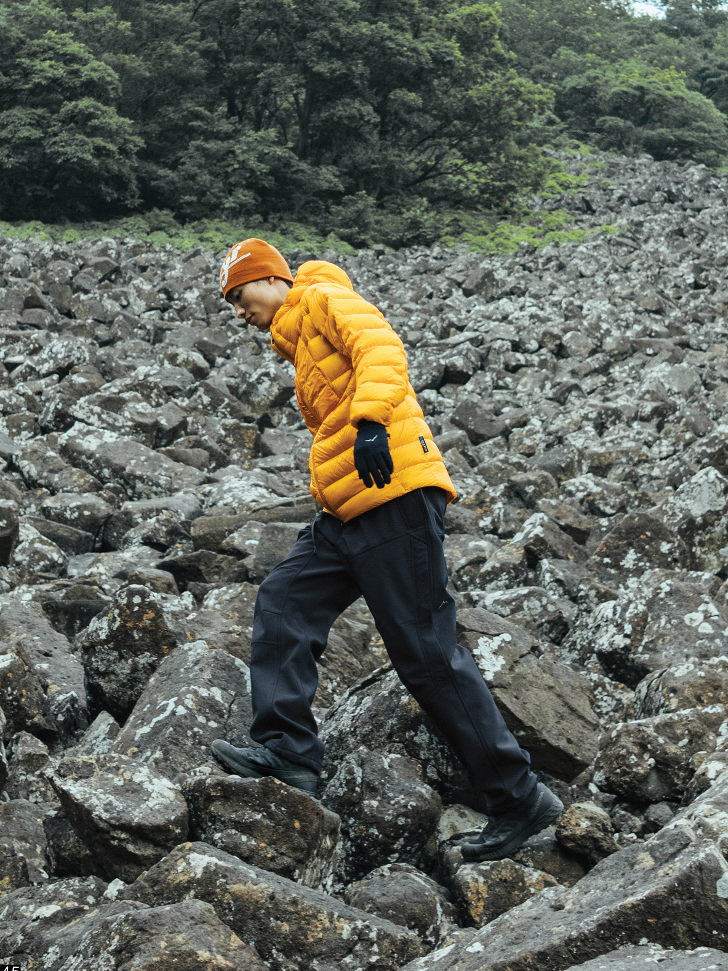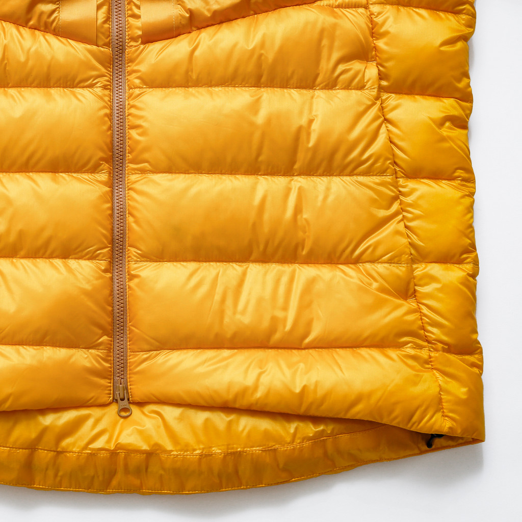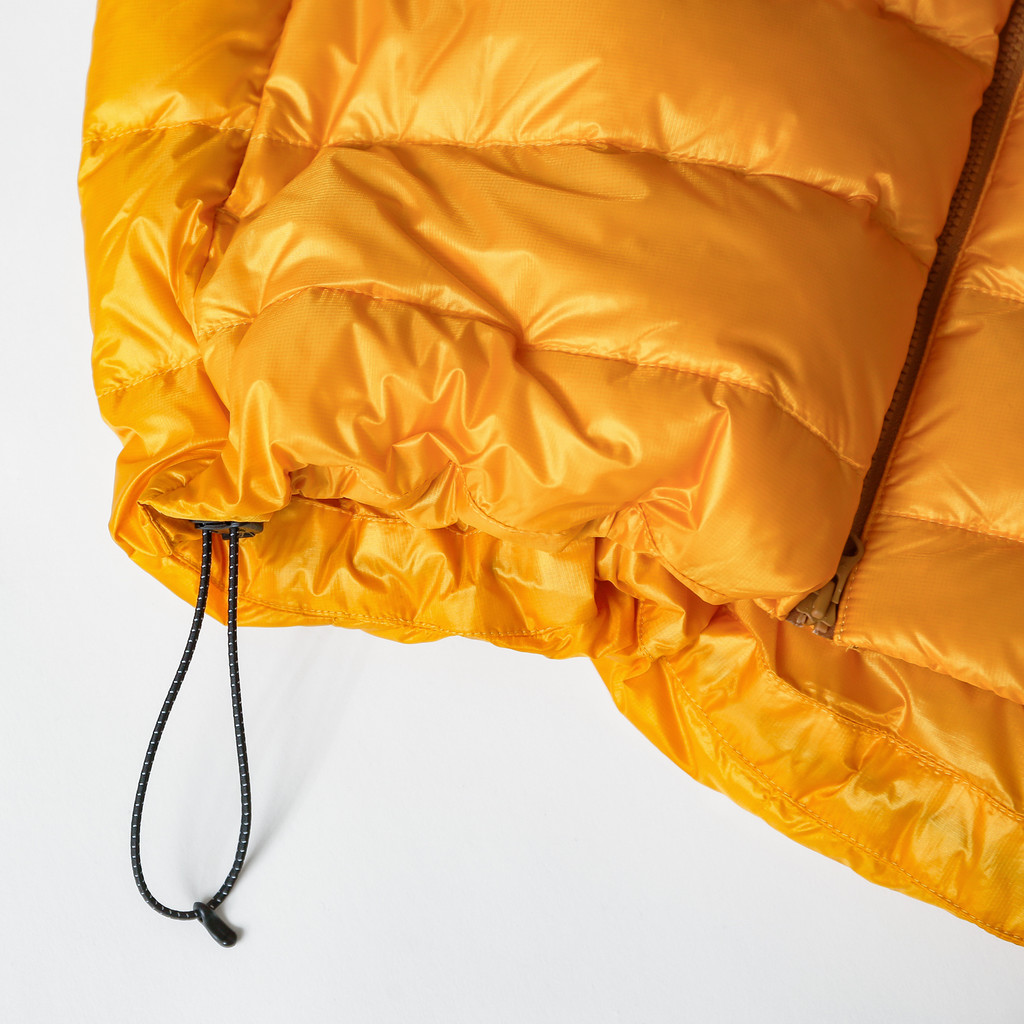 Pertex사의 원단과 European Goose Down 을 적용하였습니다. 다운 푸르프 코팅되어 있고, 표면은 발수 코팅(DWR)이 적용되어 일정 기간동안 물을 튕겨낼 수 있습니다.