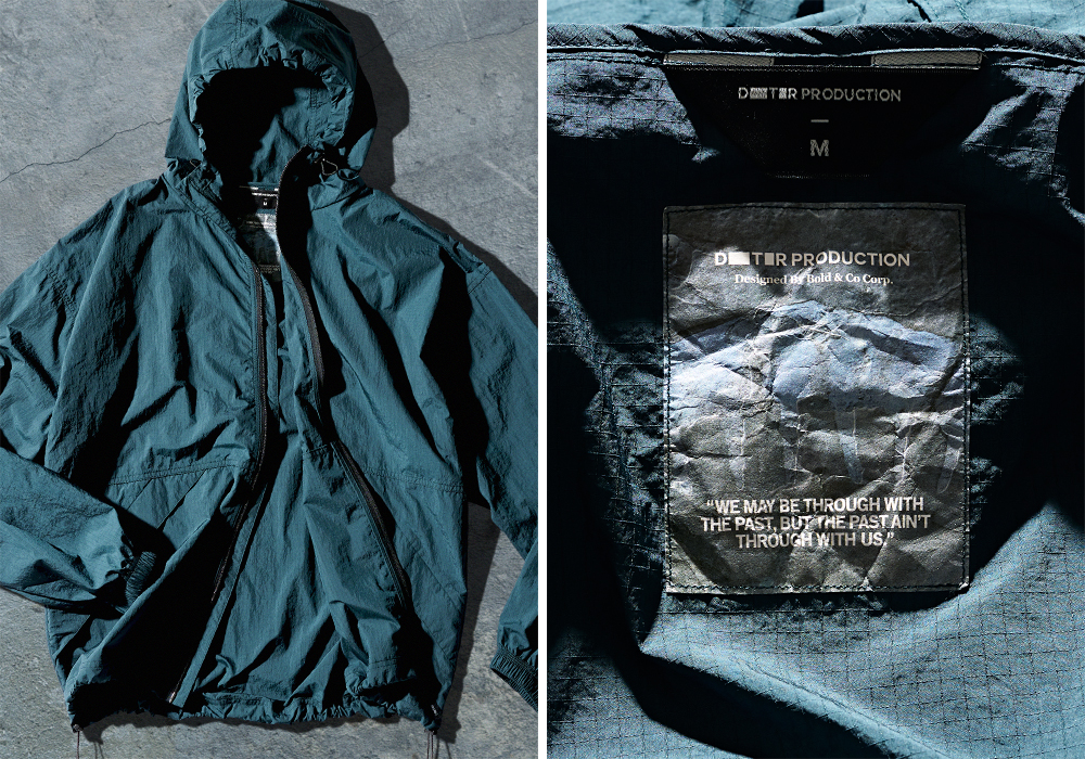 기존 빈티지 제품에는 없었던 후드의 추가 및 각 부분별 디테일을 현대적으로 발전시켜 활동성과 경량화에 가장 큰 목적을 두고 완성되었으며 특히 패킹이 가능하도록 듀테로 립 스탑 아미 팬츠의 듀테로 제직 나일론 소재를 사용해 별도의 패킹 백 역시 제작되었습니다.