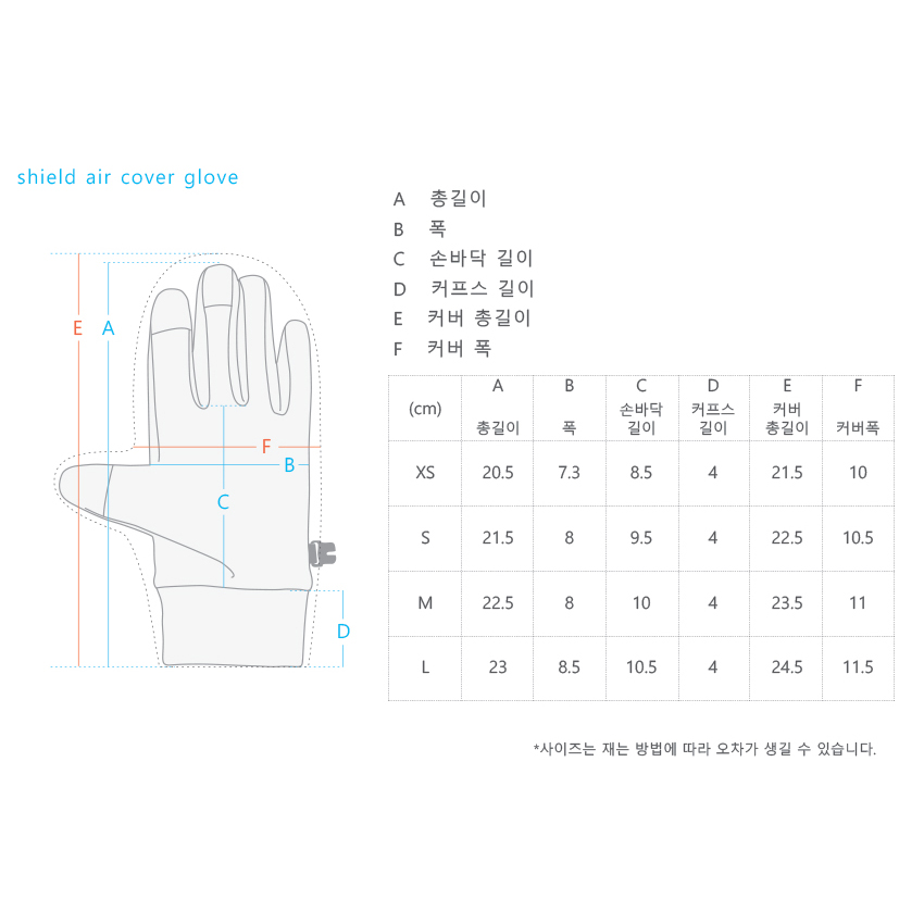 * 커버의 사이즈 및 착용 편의를 위해서는 본인 손보다 큰 사이즈 사용을 추천 드립니다.