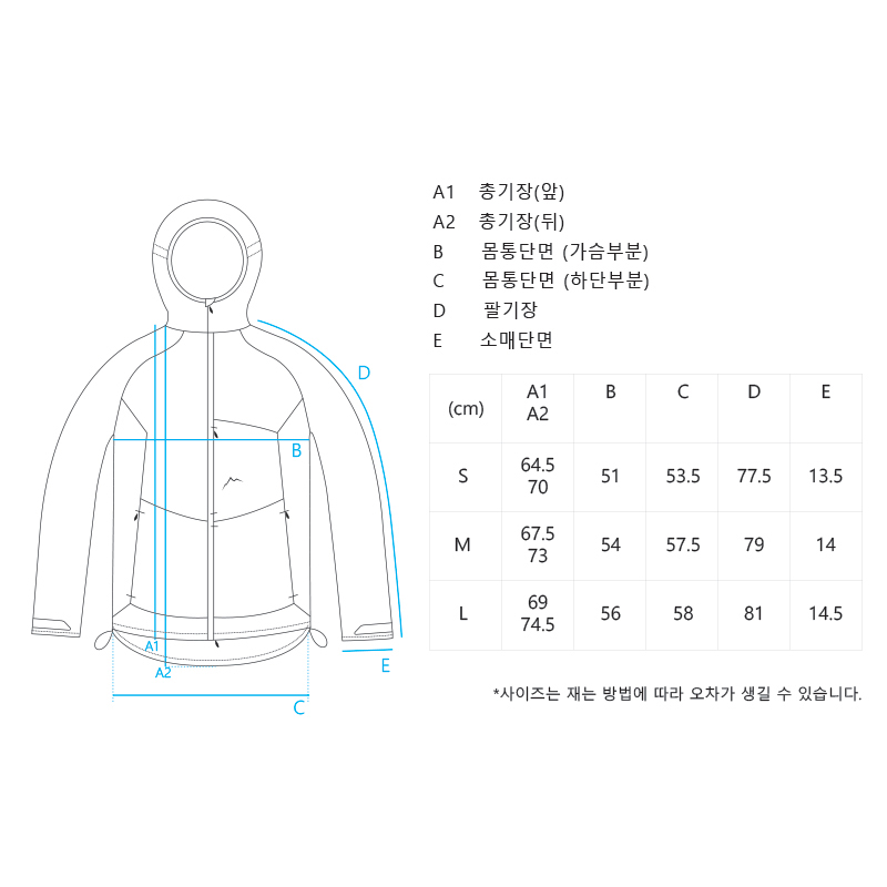 후드는 후면 1way 조절 가능한 구조, 가슴 포켓은 케일 재귀반사 로고.소매는 벨크로로 사이즈 조절이 가능하며 허리에는 사이즈 조절이 가능한 스트링이 적용되었습니다..