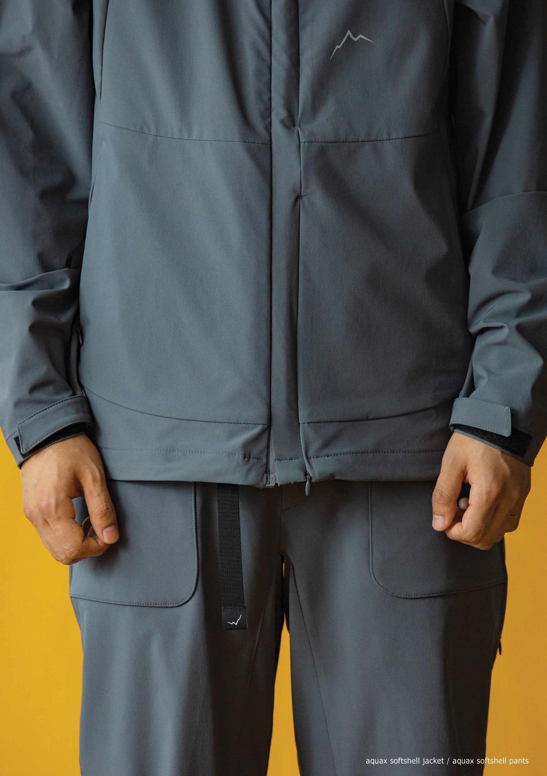 AquaX Softshell Jacket. 나일론 이중직 스판을 사용한 제품으로서 외측 나일론으로 미세한 립이 있으며 내측 AquaX 원사로 이중직 구조 기모처리 완료하였습니다. 피부 접촉면의 원사는 속건 기능이 있어 땀을 흡수하면서 건조를 빠리 하는 기능이 있습니다.